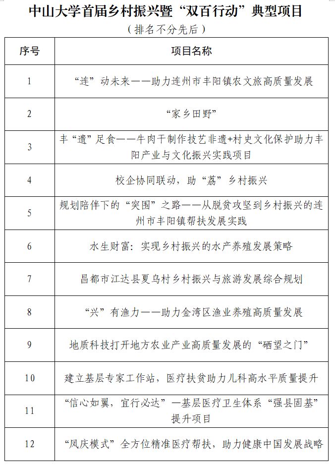 推選活動中,申報項目的負責人輪番登臺,通過PPT、視頻等充分展示了項目背景、進展情況及工作成效。由往屆教育部直屬高校精準幫扶典型項目獲得者、學校職能部門、院系及附屬醫院代表共同組成的評審團,圍繞“工作創新、社會效益、經濟效益、育人成效”等四個方面,對項目進行現場打分。生命科學學院蘇薇薇教授、地理科學與規劃學院李郇教授、孫逸仙紀念醫院陳廣成醫生等三位專家對參評項目作了總結點評,并提出了一系列針對性建議。經過綜合評審,最終共有12個項目獲評首屆鄉村振興暨“雙百行動”典型項目,其他相關項目及單位分別獲評鄉村振興暨“雙百行動”培育項目和優秀組織獎。
