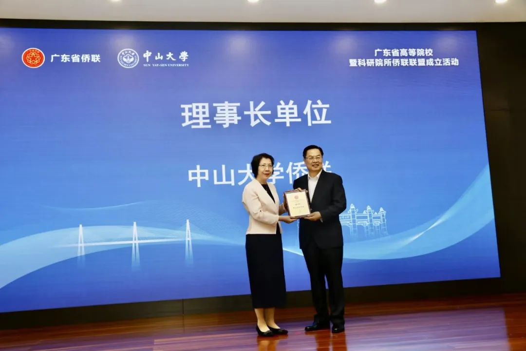 中國僑聯(lián)副主席程學源為中山大學僑聯(lián)頒發(fā)理事長單位牌匾