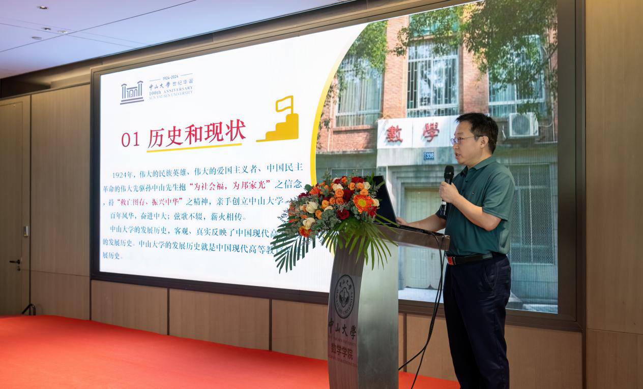 數(shù)學(xué)學(xué)院院長陳兵龍教授作“百年中大,百年數(shù)學(xué)”主題報(bào)告。他從歷史和現(xiàn)狀、學(xué)科建設(shè)、教育教學(xué)和服務(wù)灣區(qū)四個(gè)方面系統(tǒng)全面地介紹了中山大學(xué)數(shù)學(xué)學(xué)院的發(fā)展情況,并請(qǐng)參會(huì)的專家學(xué)者為中山大學(xué)數(shù)學(xué)學(xué)科的發(fā)展建言獻(xiàn)策。