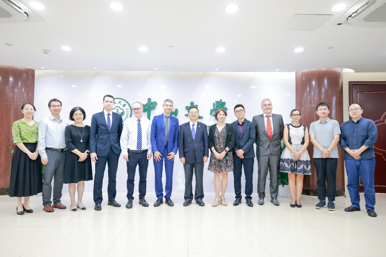 中大新聞網訊(通訊員周越、韓穎)6月1日上午,法國格勒諾布爾綜合理工學院(Grenoble INP - UGA)校長、法國民用核能工程師教學聯盟(FINUCI)主席Vivien QUéMA教授率團訪問我校。代表團成員還包括該校主管國際事務的副校長Lorena ANGHEL教授,物理電子與材料學院(Phelma)教授兼微電子、電磁學與光子學研究所(IMEP-LaHC)主任Jean-Emmanuel BROQUIN教授。中山大學校長高松校長在廣州校區南校園中山樓貴賓廳會見來賓一行。