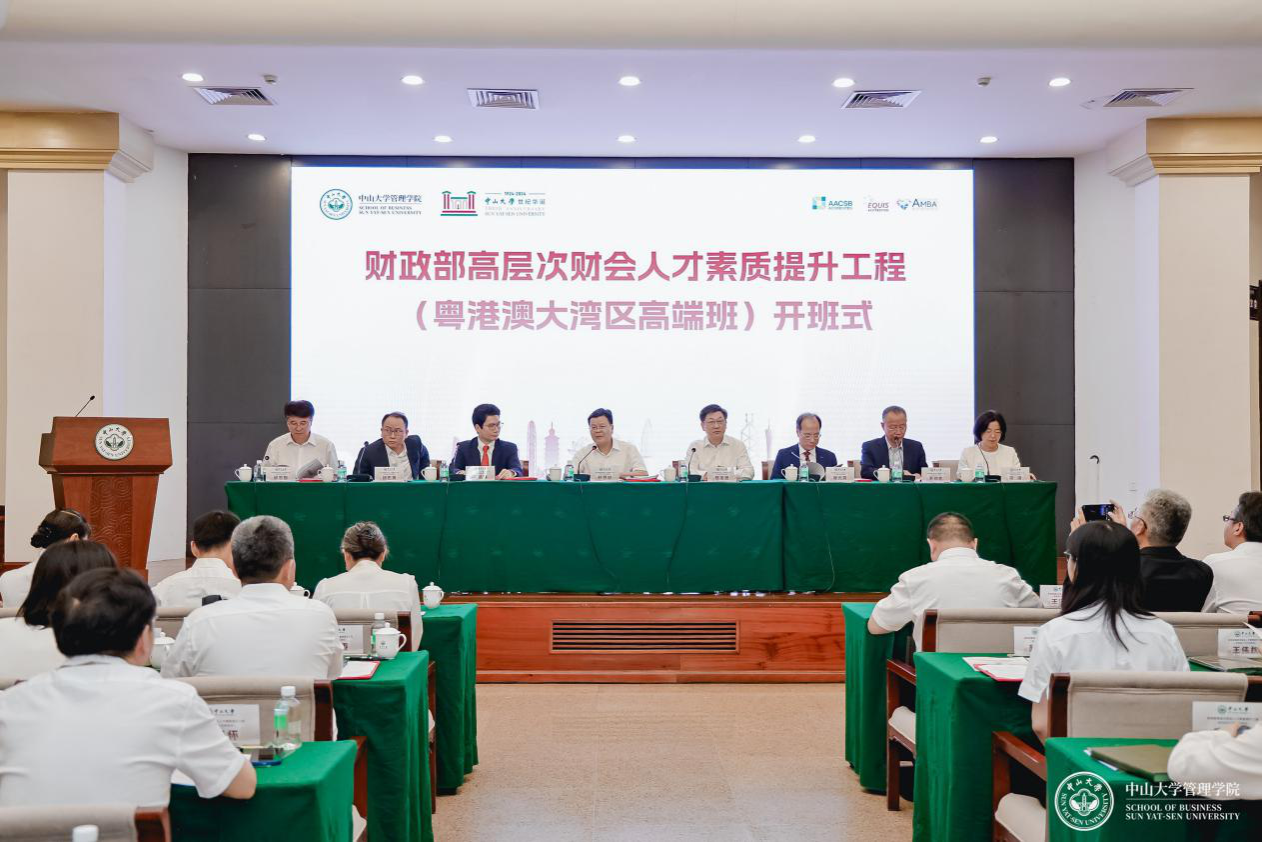 中大新聞網訊(通訊員牟欣)為深入實施新時代人才強國戰略,貫徹落實財政部《會計改革與發展“十四五”規劃》和《會計行業人才發展規劃(2021-2025年)》有關要求,扎實推進粵港澳大灣區會計人才高地建設,財政部統一組織實施高層次財會人才素質提升工程(粵港澳大灣區高端班),廣東省財政廳、香港中聯辦、澳門中聯辦協同培養,中山大學、廈門國家會計學院負責具體培養。首期財政部高層次財會人才素質提升工程(粵港澳大灣區高端班)于6月17日在中山大學廣州校區南校園開班。財政部黨組成員、副部長朱忠明以視頻連線方式出席開班式并講話。財政部會計司司長舒惠好、廣東省財政廳廳長陳國煌、香港特區政府財庫局副局長陳浩濂、澳門特區政府財政局局長容光亮、中央政府駐港聯絡辦行政財務部部長胡忠勇、中央政府駐澳聯絡辦行政財務部部長王勁松、中山大學邰忠智副校長、廈門國家會計學院鄭涌副院長、廣東省注冊會計師行業黨委專職副書記饒歆俊、中山大學管理學院院長張俊生等有關負責人以及粵港澳大灣區高端班全體30名學員參加開班式。開班式由財政部會計司司長舒惠好主持。