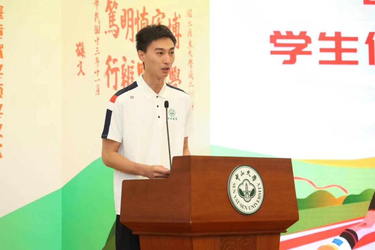 中山大學高水平男排隊員、體育部研究生陳化珂代表獲獎學生發言
