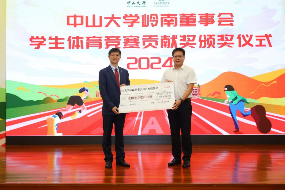 體育部范振國主任接受中山大學嶺南學院董事會主席任鋒捐贈的獎勵金