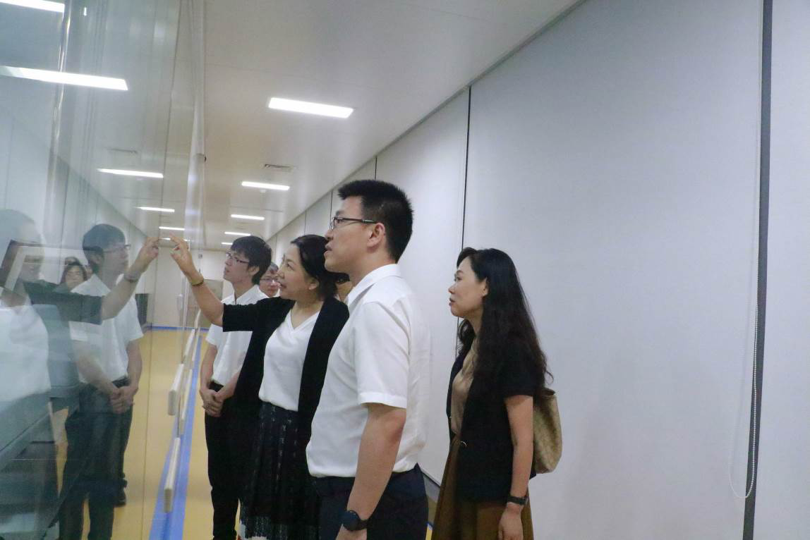 夏瑜校友向謝湜副校長一行介紹康方生物生產車間