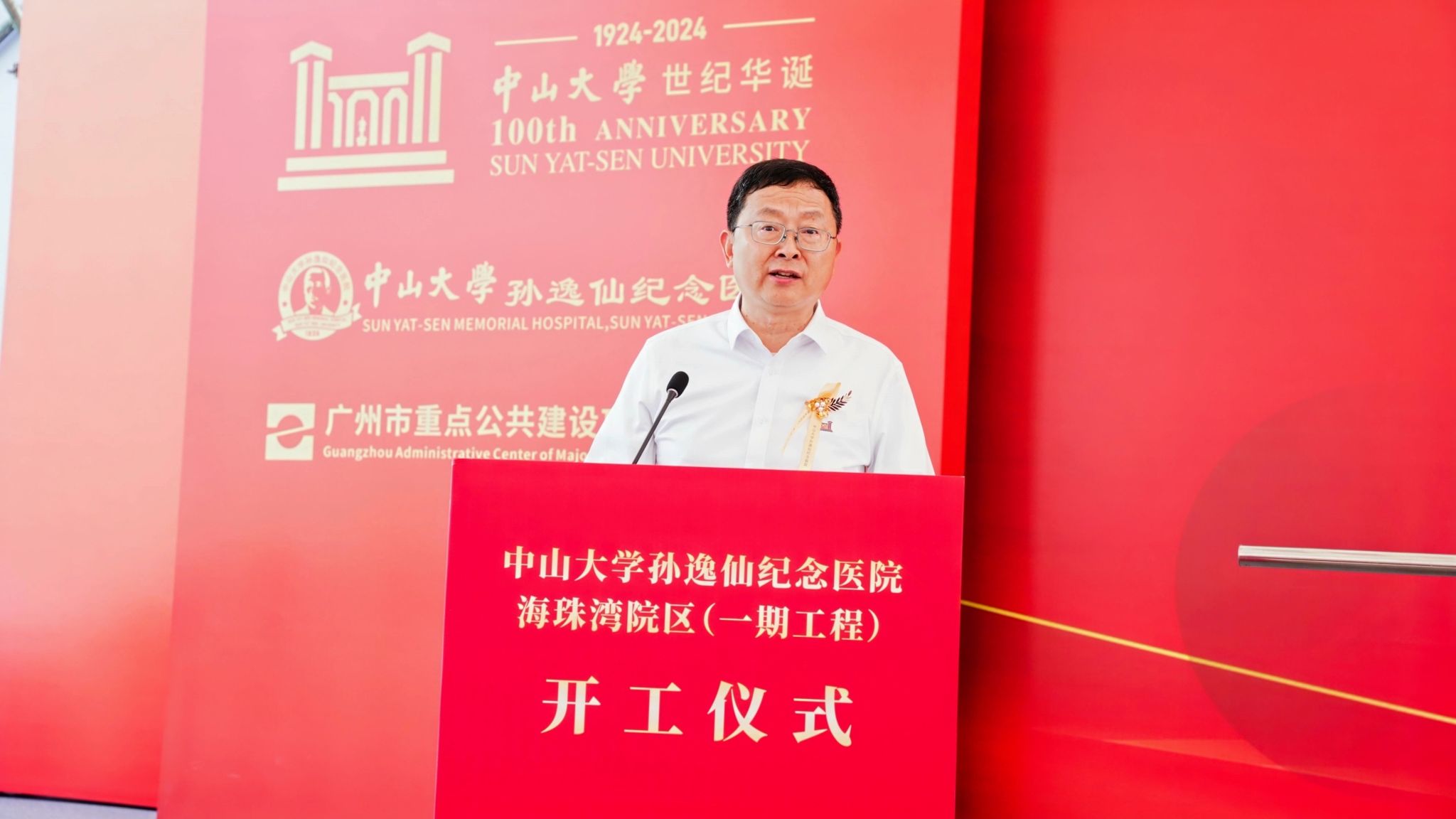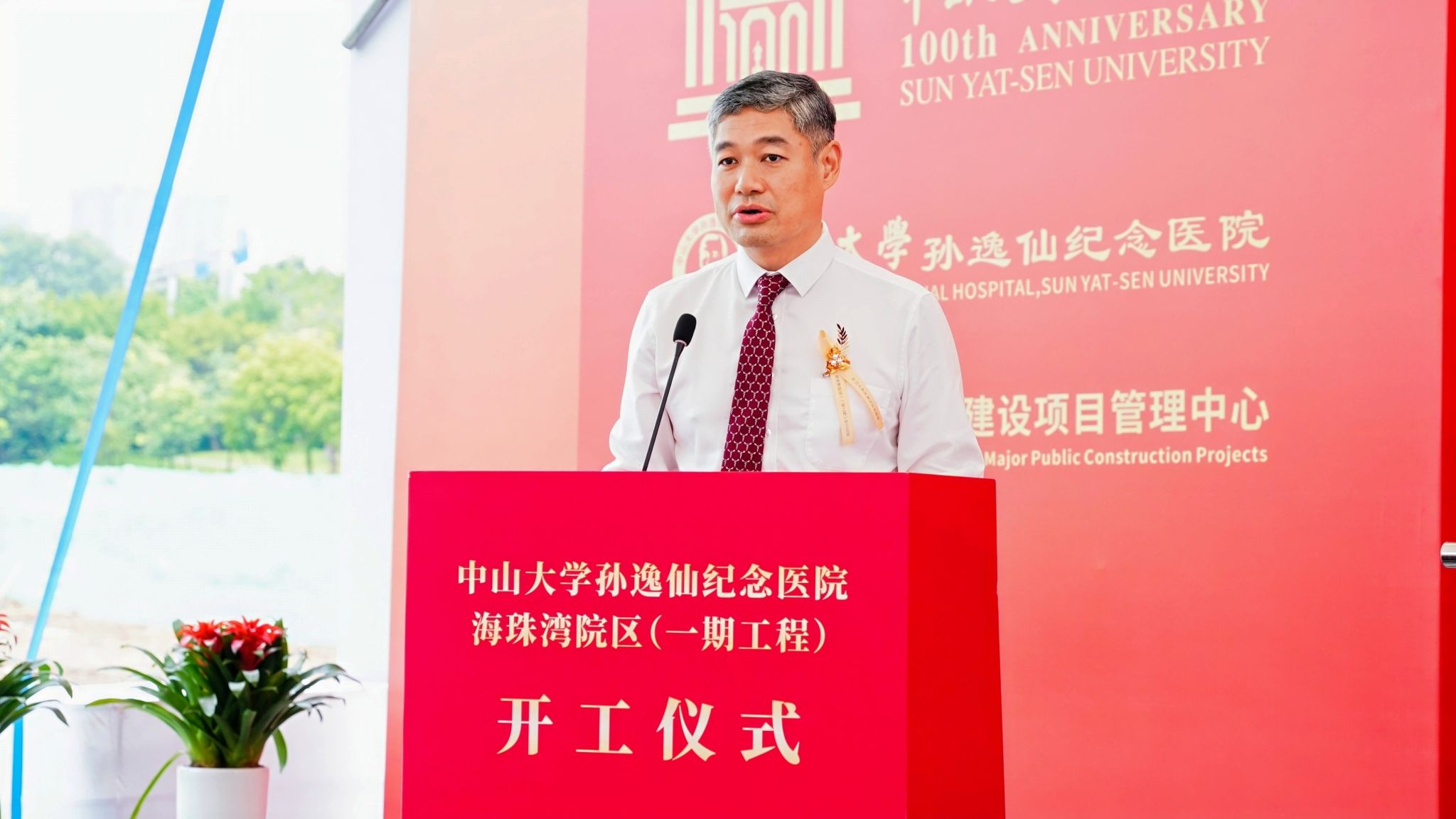 高松在致辭中表示,今日院區正式開工建設,不僅是醫院發展歷程中一座新里程碑,更是中山大學醫學教育事業蓬勃發展的生動體現。希望孫逸仙紀念醫院在新的時期,立足新的發展階段,依托新的院區布局,打造成為醫、教、研、產為一體的中國特色、世界一流高水平研究型醫院,為造福地方百姓健康、助力粵港澳大灣區健康事業、實現健康中國戰略目標做出更大、更多的新貢獻。