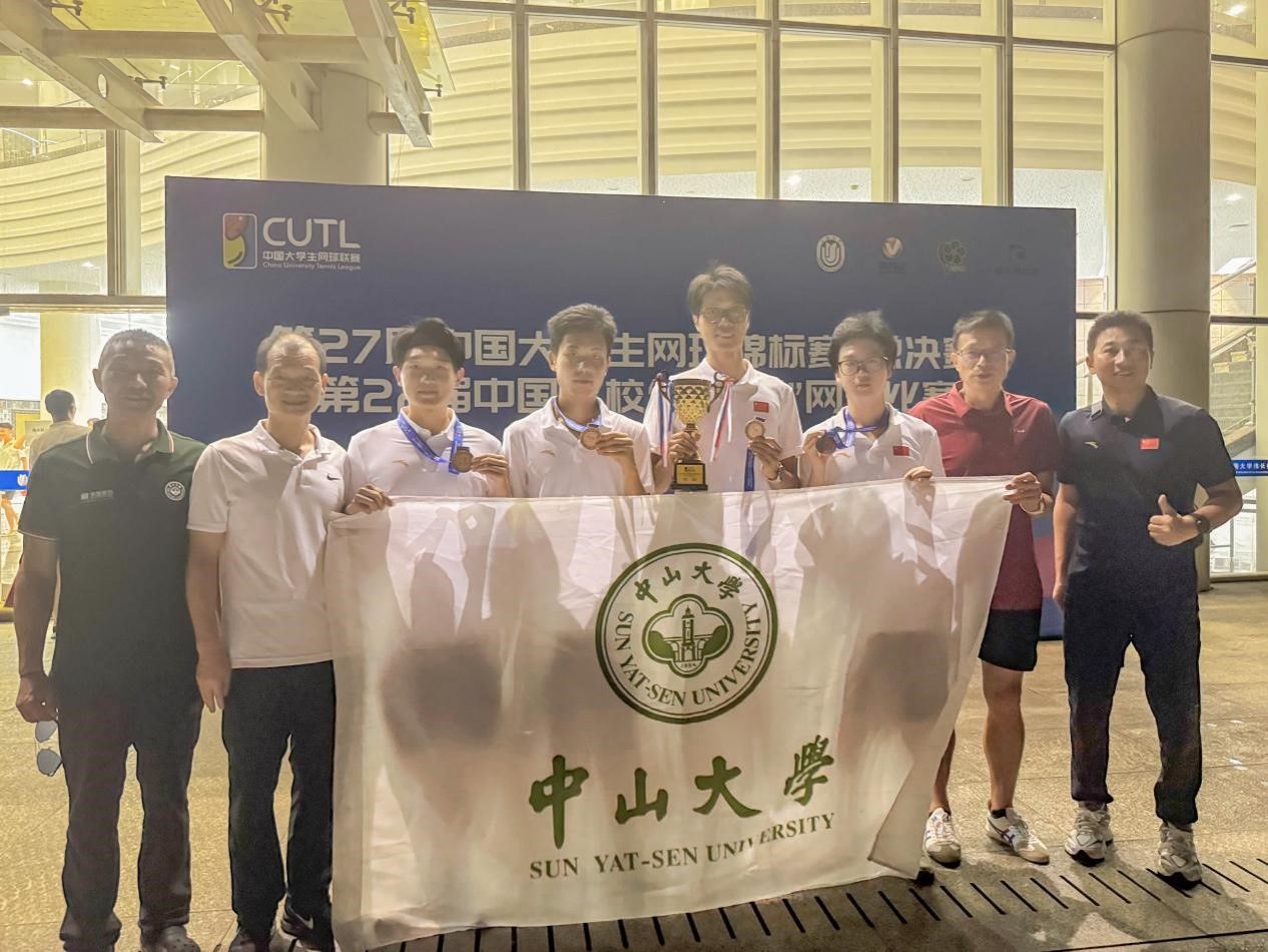 在小組賽中,中山大學男子團體以3:0力挫中南財經政法大學隊,以3:0戰勝桂林電子科技大學隊,以1:2惜敗于長安大學隊,最終以小組第二名晉級淘汰賽;在淘汰賽首輪,中山大學隊以2:0戰勝賽會4號種子澳門大學隊;在四分之一決賽,以2:1戰勝江西財經大學隊;在半決賽中,中山大學隊與浙江大學隊對決,在先失一盤的不利局勢下奮力反擊,第二單打戰勝對手,第三盤雙打在局數 5:5時遭對手破發,以 5:7的比分惜敗,最終榮獲季軍。