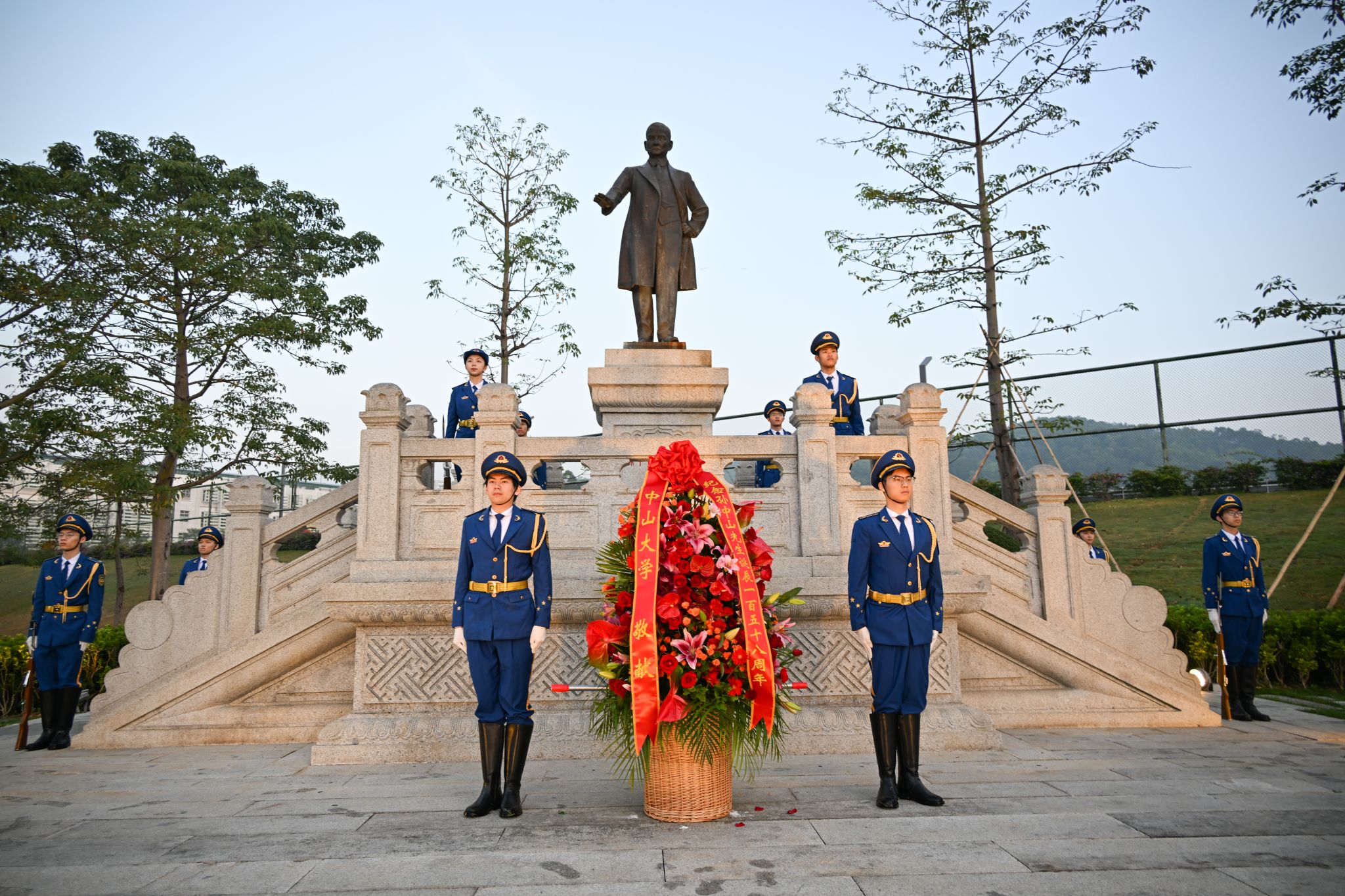 校黨委書記朱孔軍、校長高松,校黨委副書記張琪,副校長劉濟科,副校長鄭躍,副校長邰忠智分別在五個校區(園)主禮獻花儀式,向孫中山先生致敬,為中山大學慶生。學校黨委副書記國亞萍,醫學部綜合管理處處長龍波,東校園管理委員會李明章主任,珠海校區管理委員會劉梅主任,深圳校區管委會溫光浩常務副主任分別主持了廣州校區南校園、北校園、東校園,珠海校區和深圳校區的儀式。學校全體校領導,各職能部門、院系及附屬單位負責人和師生代表參加儀式。