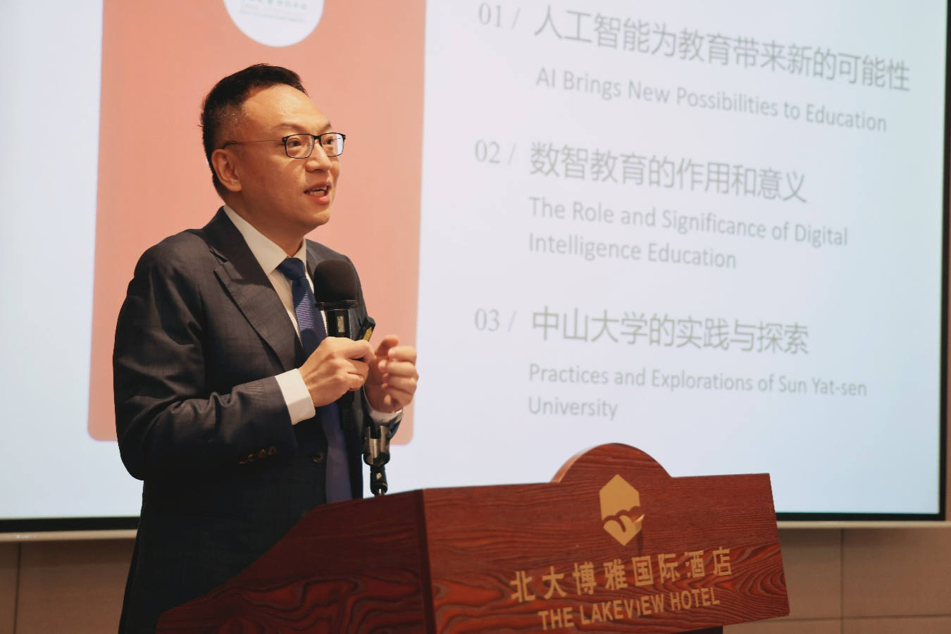 王帆副書記向與會嘉賓介紹了中山大學在人工智能賦能教育方面的思考與實踐,包括在數據治理、教學應用、人才隊伍等方面的工作,以及“強基礎、助教學、促交叉”的發展思路。在報告的最后,他表示,教育要回歸育人初心,重視科學與人文的結合,培養全面發展的人才。