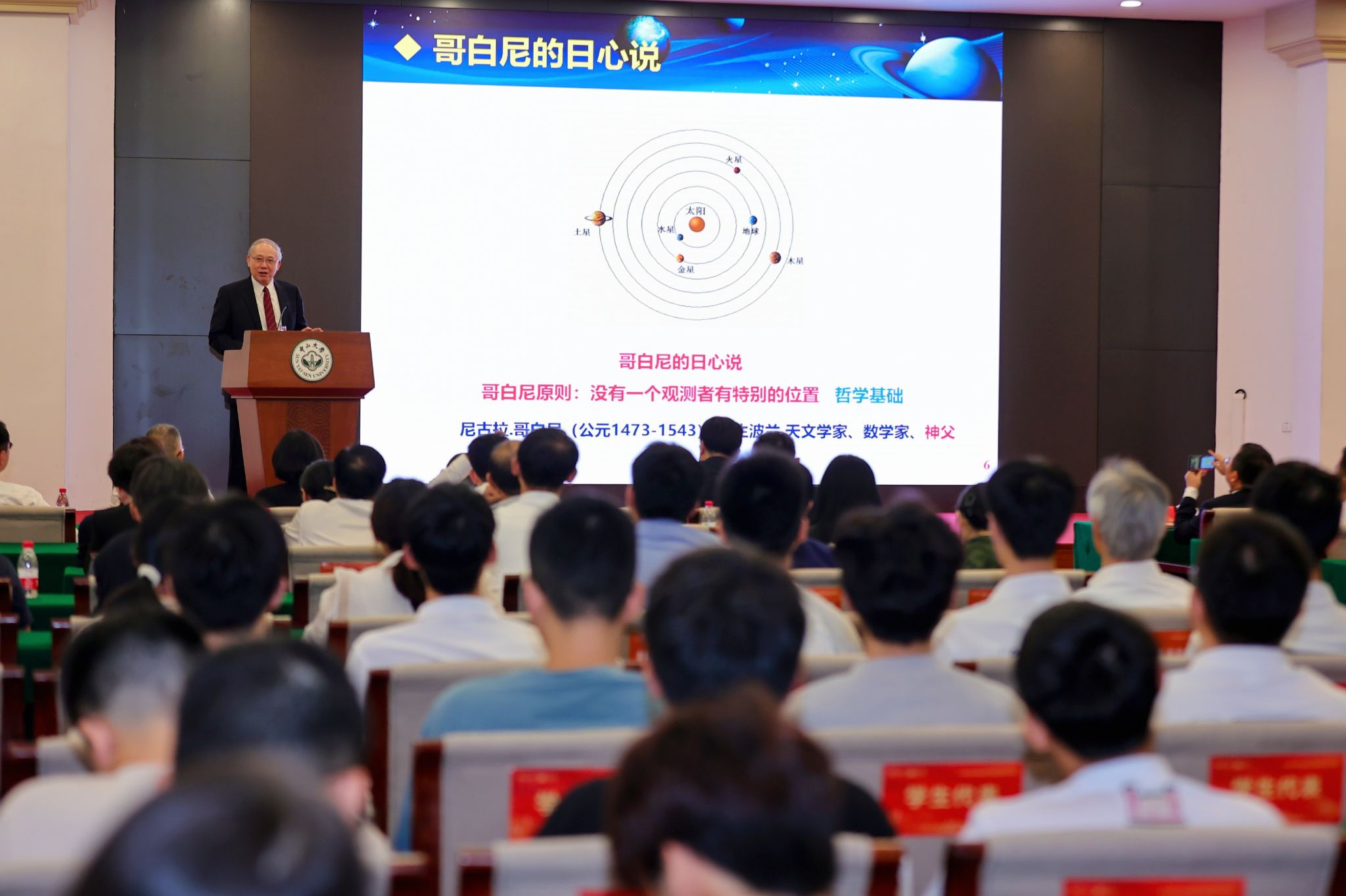 中大新聞網訊(通訊員談希)2024年11月12日,“世紀中大 山高水長”學術科研育人系列活動第100期:“百年文脈 勇立潮頭”科學家講壇在中山大學南校園懷士堂舉行。本次講壇特邀物理與天文學院羅俊院士,腫瘤防治中心馬駿院士,中國語言文學系主任彭玉平教授做專題報告。中國科協黨組成員、書記處書記王進展,廣東省科協黨組書記、副主席成洪波,廣州市科協黨組書記、副主席徐柳,中山大學校長、中山大學科協主席高松院士,中山大學副校長、中山大學科協副主席鄭躍教授,中國科協、省科協、市科協相關負責同志,以及中山大學科協第一次代表大會代表、學校相關職能部門負責同志及師生代表參加本次講壇。講壇由中山大學科協常務副主席、生命科學學院屈良鵠教授主持。