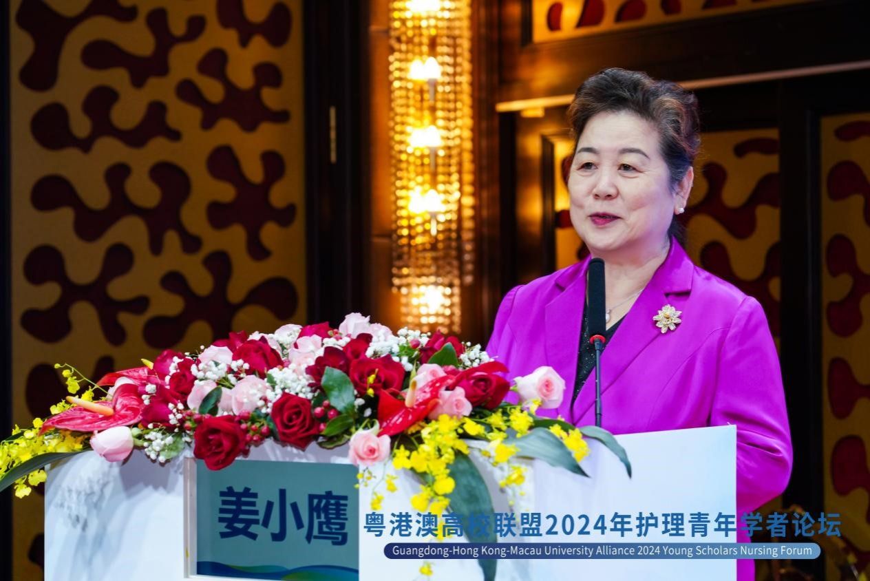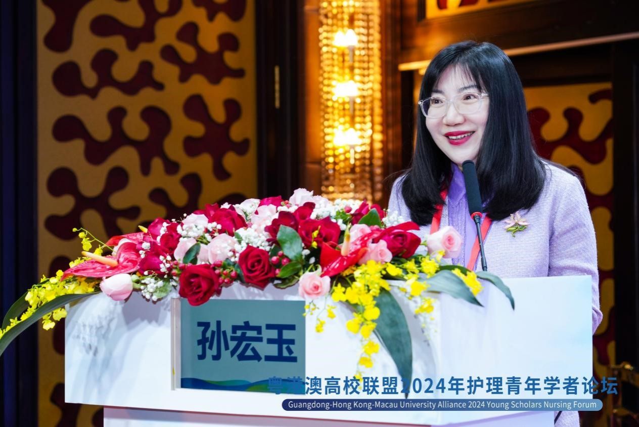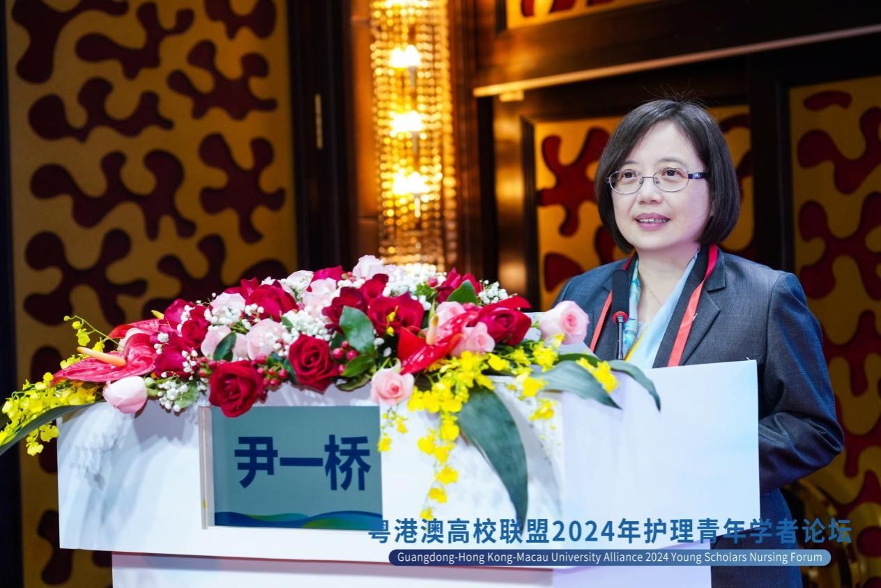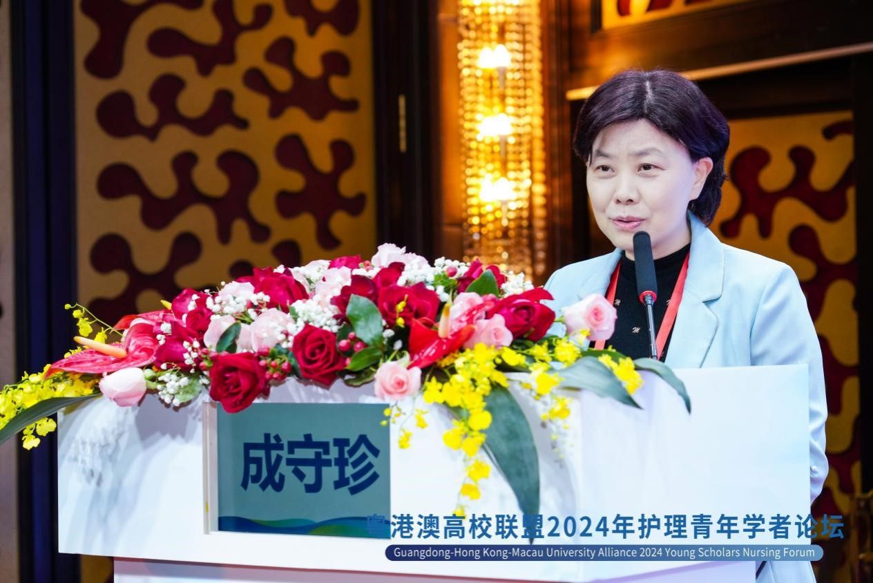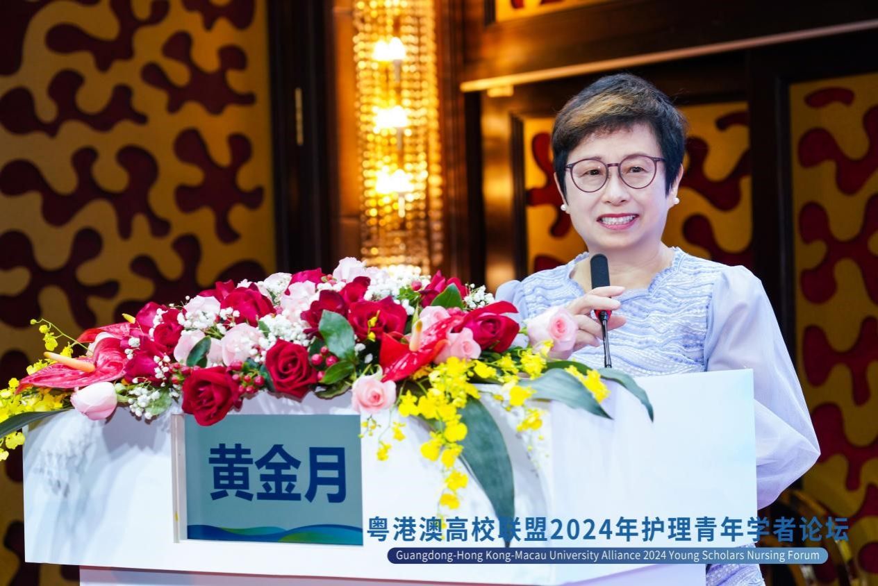 黃金月教授在致辭中提到,粵港澳高校護理聯盟成立的目的是匯聚粵港澳三地護理領域力量,促進三地交流。她表示,希望通過科研合作,把前沿的醫療護理發展理念和臨床實踐交叉融合,為患者提供更優質的醫療服務。她鼓勵粵港澳三地青年學者充分利用本次論壇機會,加強交流與合作,為護理學科創新發展貢獻力量。