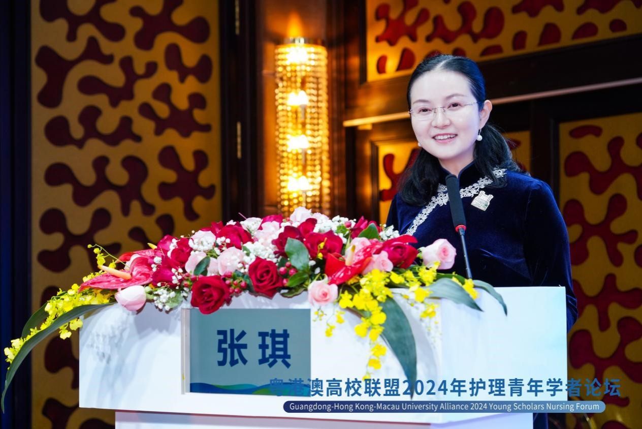張琪表示,今年是孫中山先生創辦中山大學100周年,也是中山大學護理教育創辦111周年。長期以來,中山大學和中山大學護理教育始終堅持創新發展,在人才培養、科學研究、社會服務等方面取得了重大成就,為國家和社會培養了大量杰出人才,為中華民族的偉大復興做出了重要貢獻,所取得的成績離不開社會各界和醫學同行們的關心、支持和幫助,她代表學校表示衷心感謝!張琪指出,習近平總書記在給中山大學建校100周年賀信中指出,中山大學要聚焦國家重大戰略和服務粵港澳大灣區發展的需要,更是為中山大學護理學科的發展指明了方向、注入強大動力。今天舉辦主題為“健康照護、灣區擔當”的粵港澳高校聯盟護理青年學者論壇,是落實總書記賀信精神的重要舉措,也是粵港澳高校護理聯盟為灣區護理同仁搭建的一個學術交流合作平臺。張琪希望通過此次論壇,讓各位學者共同探討護理學科的發展前景和趨勢,分享科研成果和教學經驗,推動護理學科的持續發展和創新,以及護理學科與醫療、健康等相關產業的深度融合,為粵港澳大灣區的健康事業發展做出新的更大貢獻。