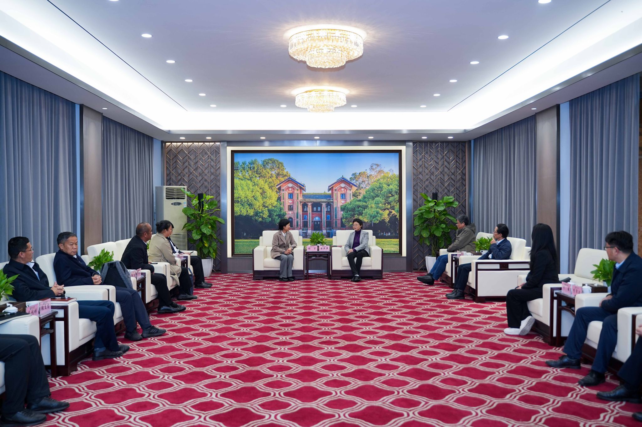 國(guó)亞萍副書(shū)記代表中山大學(xué)對(duì)臨滄市代表團(tuán)的到訪表示熱烈歡迎,并高度評(píng)價(jià)臨滄市在經(jīng)濟(jì)社會(huì)發(fā)展和鄉(xiāng)村振興方面取得的顯著成績(jī)。她指出,中山大學(xué)堅(jiān)決貫徹落實(shí)習(xí)近平總書(shū)記致中山大學(xué)建校100周年重要賀信精神,立足服務(wù)國(guó)家戰(zhàn)略,堅(jiān)持“舉全校之力,謀長(zhǎng)久之功”,全力以赴做好定點(diǎn)幫扶工作。多年來(lái),中大師生滿(mǎn)懷真情實(shí)意,堅(jiān)持真抓實(shí)干,深入邊疆,扎根基層,為當(dāng)?shù)剜l(xiāng)村振興發(fā)展貢獻(xiàn)了智慧和力量。國(guó)亞萍副書(shū)記表示,學(xué)校將繼續(xù)發(fā)揮學(xué)科和人才優(yōu)勢(shì),聚焦鳳慶實(shí)際需求,在特色產(chǎn)業(yè)發(fā)展、科研成果轉(zhuǎn)化、公共服務(wù)等領(lǐng)域提供技術(shù)支撐,與臨滄市攜手并進(jìn),為鳳慶高質(zhì)量發(fā)展、鄉(xiāng)村全面振興作出新的更大貢獻(xiàn)。