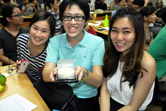 月餅毫無疑問是本次漢語沙龍的主角。留學生不僅了解了這一中秋特色食品,更品嘗到各式口味的月餅,從傳統的蛋黃蓮蓉月、火腿五仁月,到近年改良創新的水果月、冰皮月等等不一而足。不少留學生是第一次品嘗廣式月餅,琳瑯滿目的各色月餅讓留學生們目不暇接、回味無窮,現場氣氛相當熱烈。中山大學?;招S柋ぴ嘛灥牧料啵且l了留學生們的陣陣歡呼。
