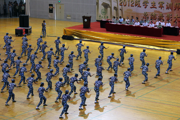 經過半個月的刻苦努力,同學們圓滿完成了軍事課教學大綱的規定訓練內容,達到了軍訓的預期目的,取得了豐碩的成果。會上,中大學子們個個英姿颯爽、神采奕奕,準備一展軍訓風采、接受考核檢閱。整個大會,同學們都表現出了嚴格遵守紀律意識,“站如松、坐如鐘、行如風”,充分展示了軍訓以來他們用激情和汗水所鑄就的結晶。訓練場上,分列式步伐整齊、鏗鏘有力,軍事科目匯報表演組織有序、創意非凡……學子們激情洋溢、精彩紛呈,展示了軍訓中所學到的技能和本領。