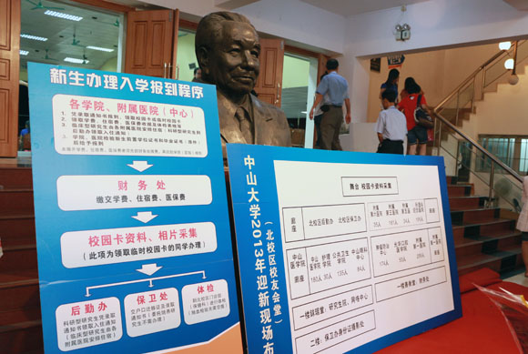 教務處編印了《2013級新生學習指引》便攜手冊,簡要介紹了課程修讀、專業培養、創新創業訓練、校際交流培養等方面的情況,并于8月12日發往各文理工科院系,供每位新生參閱。他們還于開學第一天在南校區、東校區和珠海校區分別設立迎新點,由各職能科室的管理人員面對面地為新生提供本科階段學習問題的相關咨詢。