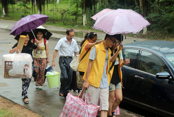為盡量減輕臺風對迎新工作的影響,研究生院商同各有關單位,在迎新現場增設遮雨棚,并準備大量雨傘和塑料袋,為新生和家長遮雨或放傘使用;提醒各有關機關及研究生培養單位在布置有關工作時充分考慮臺風的影響因素,切實做好各項服務工作;同時與保衛處專門研究現場車輛和人群的疏導問題,最大程度上為新生和家長提供便利的同時,確保現場的安全和秩序。