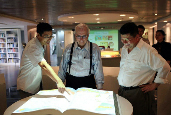期間,來賓還仔細參觀了國際漢語教材研發和培訓基地的“全球漢語教材展示中心”圖文展示、實體教材展示、多媒體展示、互動體驗等4個區域。來賓對極具特色的多國語言墻,不同時期、種類多樣的漢語教材,以及信息豐富的全球漢語教材庫表示贊賞。