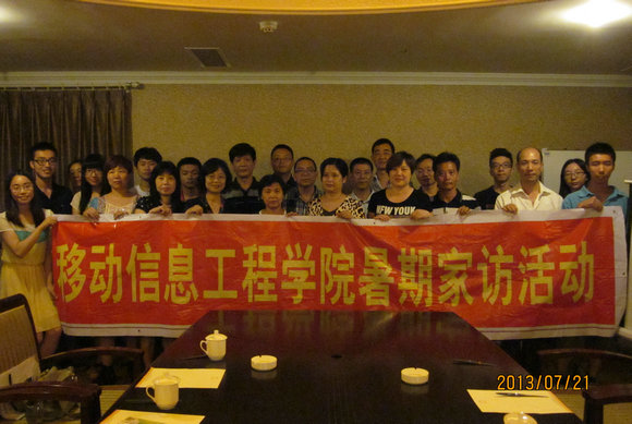 移動信息工程學院學工團隊一行3人前往汕頭地區學生家庭,有針對性地與家長們就學生學習、生活等方面的內容進行了訪談,進一步了解了學生們的學習和生活狀態,為新學年學生管理工作打下了良好基礎。此外,為了進一步宣傳新建學院、擴大家訪活動范圍、加強新建學院在生源重點區域的影響力(移動信息工程學院2012級學生中有17人來自汕頭地區),移動信息工程學院還于7月21日在汕頭市召開了家長座談會,汕頭地區學生家長及部分2013級“準新生”受邀參加了會議。移動信息工程學院黨委副書記陳凌向與會家長匯報了學院建院一年來的建設和發展情況,并與學工團隊的輔導員老師一起同家長們進行了充分的交流,聽取了家長們對學院教學、師資和學生管理等方面的意見和建議。