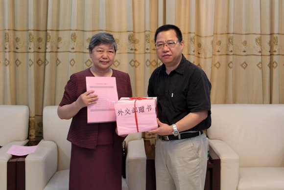 朱孔軍副書記接收徐亞男大使向我校贈送外交方面的書籍