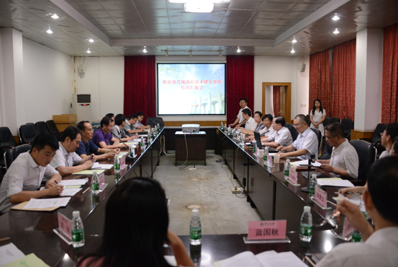李善民校長助理就我校基本建設管理情況作了匯報,詳細介紹了我校總體情況和校園風貌特征,以及我校基本建設的組織機構、總體規劃、管理制度、管理模式、管理風險防范與控制、管理信息化建設、管理中存在的困難和建議等方面的情況。
