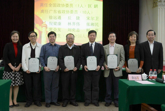 鄭德濤書記在總結時強調,各單位要認真學習領會“兩會”精神,抓好會議精神的貫徹落實,結合學校十二五規劃及各項工作,推進學校的科學發展;期盼各級人大代表、政協委員們積極為黨和國家建言謀策,為擴大學校影響力、提高學校聲譽發揮作用。鄭書記還為離任的全國、省政協委員頒發鳴謝證書,感謝他們在擔任政協委員期間,認真履行職責,積極參政議政,為國家、廣東省和我校的發展作出了貢獻。