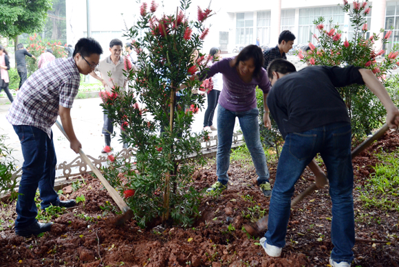 3月25日下午,我??倓?wù)處、化學與化學工程學院聯(lián)合在南校區(qū)開展了畢業(yè)生植樹活動?;瘜W與化學工程學院毛宗萬院長、古小紅書記、總務(wù)處干部、化學與化學工程學院09級畢業(yè)班的學生代表、學校園林中心工作人員,以及學院教職工約50人參加了活動。