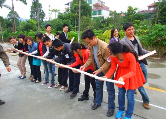 一到達(dá)拓展基地,隊(duì)員們即被教練分為四組,并自命名為春田幼稚園隊(duì)、十全十美隊(duì)、元芳隊(duì)和華南虎隊(duì)。各隊(duì)隊(duì)員在隊(duì)長帶領(lǐng)下團(tuán)結(jié)協(xié)作,積極配合裁判,服從指揮,奉著友誼第一的宗旨,以高漲的熱情投入到各項(xiàng)活動(dòng)中。歡樂的時(shí)光總是飛快流逝,滿載著歡樂的友誼之船由此揚(yáng)帆起航?;顒?dòng)的最后一個(gè)環(huán)節(jié),隊(duì)員們寫下祝福卡片,互換禮物,并合影留念,為活動(dòng)畫上了圓滿的句號(hào)。