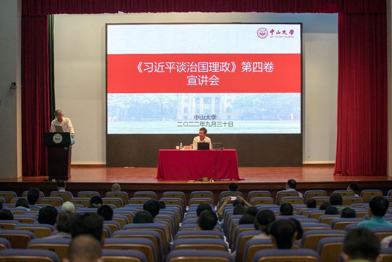 中大新聞網廣州10月1日電(記者蔣靜)9月30日下午,我校在廣州校區南校園三教講學廳舉行《習近平談治國理政》第四卷宣講會,邀請省委宣講團成員、省社會科學院副院長趙細康作宣講報告。校黨委書記陳春聲、校長高松及有關校領導出席宣講會。校院兩級黨委理論學習中心組成員、職能部門負責人、學生代表,共600余名師生在各會場收聽收看宣講會。宣講會由校黨委書記陳春聲主持。