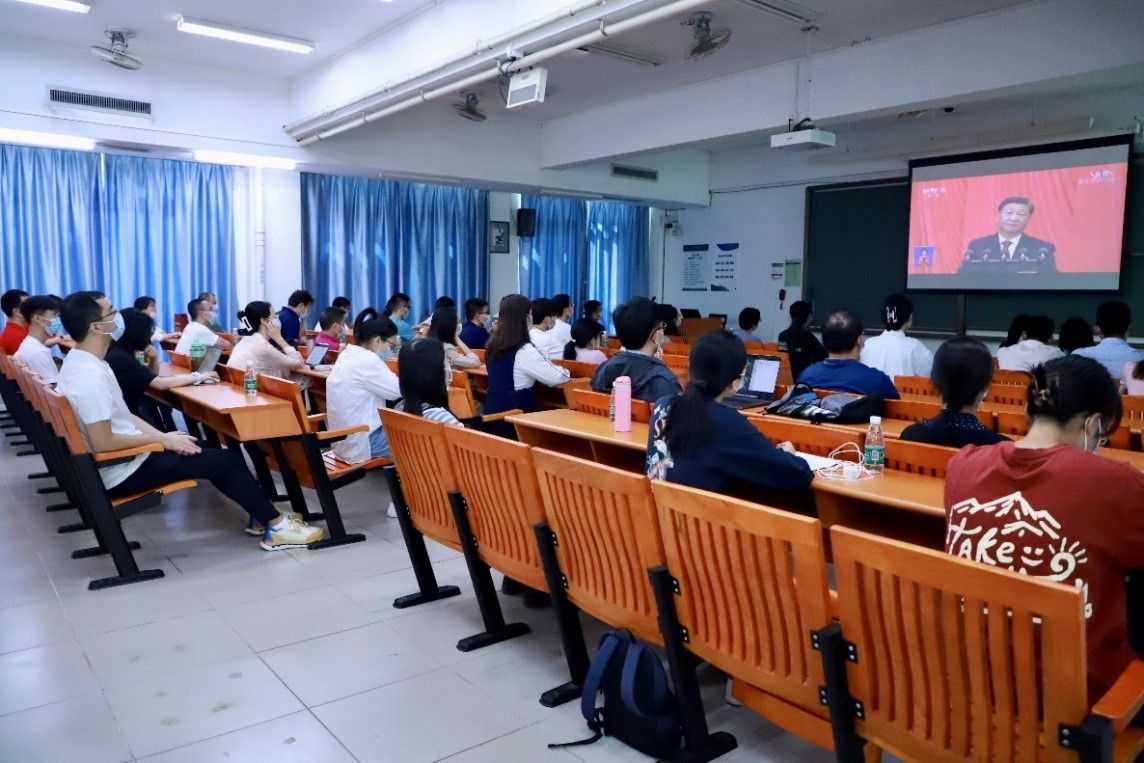 中大新聞網廣州10月16日電(記者蔣靜、孫琛)10月16日上午,舉世矚目的中國共產黨第二十次全國代表大會在人民大會堂開幕。習近平總書記代表第十九屆中央委員會向大會作題為《高舉中國特色社會主義偉大旗幟 為全面建設社會主義現代化國家而團結奮斗》的報告。中山大學黨委高度重視,組織廣州校區各校園、珠海校區、深圳校區黨員干部、師生代表第一時間集中收聽收看開幕會。學校和二級單位累計組織315個集中收看會場。此外,各二級單位還廣泛組織師生個人通過多種渠道收聽收看開幕會。