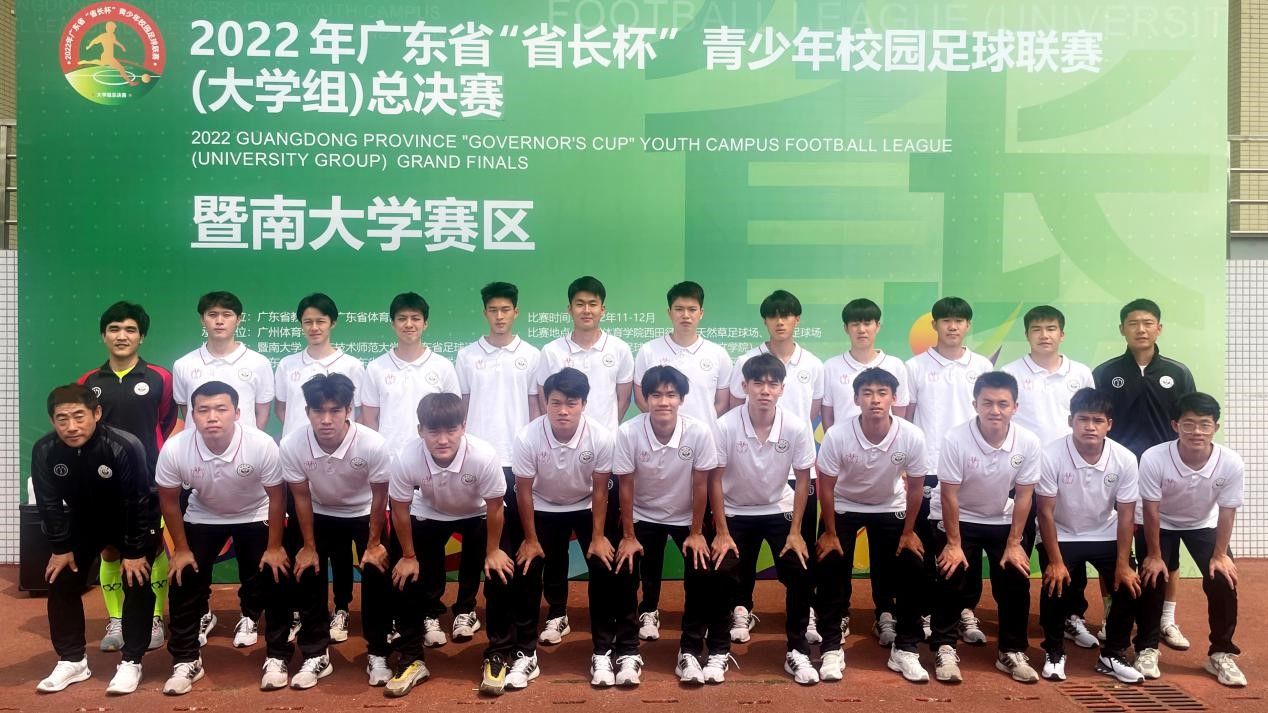本屆省足球聯賽中,我校足球隊在領隊楊波,主教練張曉宇,助理教練李悅慷、趙歆翟老師指導下,完成了9天6場的高強度比賽。隊員們發揚奮勇拼搏的精神,敢打敢拼的作風,在小組賽中,以3勝1負的成績排名小組第二晉級半決賽;半決賽中,對陣另一小組排名第一的廣州體育學院足球隊,在0:1落后的情況下,頑強扳平比分,通過點球決勝淘汰對手晉級決賽;決賽對戰華南理工大學足球隊,在比分落后的不利情況下,球隊嚴格執行教練團隊制定的“防守反擊”戰術,穩固中場防守的同時抓斷球后的快速反擊以及把握前場的定位球機會,團結一致將比分扳平把冠軍收入囊中。