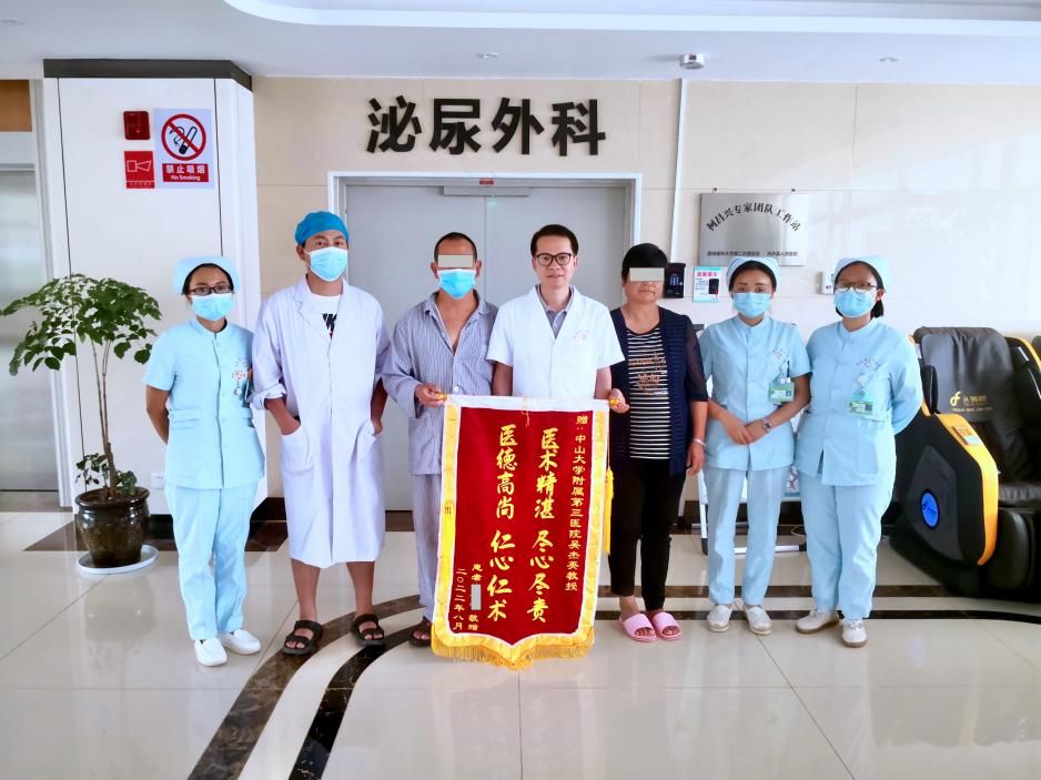 在鳳慶幫扶的半年內(nèi),吳杰英共接診了三例陰莖癌患者,其中一例令他印象十分深刻。患者來診時(shí)腫瘤已侵犯較大范圍,錯(cuò)失了根治切除的機(jī)會(huì)。患者知情后心情十分低落,吳杰英鼓勵(lì)患者積極面對(duì),表示將積極為其治療,并為其申請(qǐng)“中山大學(xué)幫扶救助基金”。通過MDT討論,吳杰英帶領(lǐng)團(tuán)隊(duì)為該患者實(shí)施了手術(shù),解決了患者排尿困難的問題。患者順利康復(fù)后接受化療聯(lián)合免疫治療的方案,為后續(xù)進(jìn)一步治療創(chuàng)造了條件。患者對(duì)治療情況感到十分滿意。該患者的順利施治,助力鳳醫(yī)泌尿外科熟悉晚期陰莖癌手術(shù)技術(shù),學(xué)習(xí)腫瘤綜合治療的先進(jìn)理念。