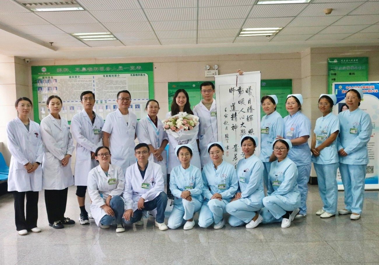 在幫扶的半年中,余曦靈累計門診帶教診療860人次,住院患者帶教查房400余次,帶教玻璃體視網(wǎng)膜手術(shù)20余臺,視網(wǎng)膜激光光凝術(shù)40余臺,科內(nèi)授課19次,遠(yuǎn)程連線病例討論20余例,下鄉(xiāng)義診10次共500余人次。余曦靈的工作成果得到了鳳慶縣人民醫(yī)院領(lǐng)導(dǎo)和同事們的高度評價,她也與各位醫(yī)務(wù)人員結(jié)下了深厚的友誼。在離別之際,眼科的同事為了感謝她為鳳慶縣人民醫(yī)院發(fā)展作出的貢獻(xiàn),送給了她一首藏頭詩: