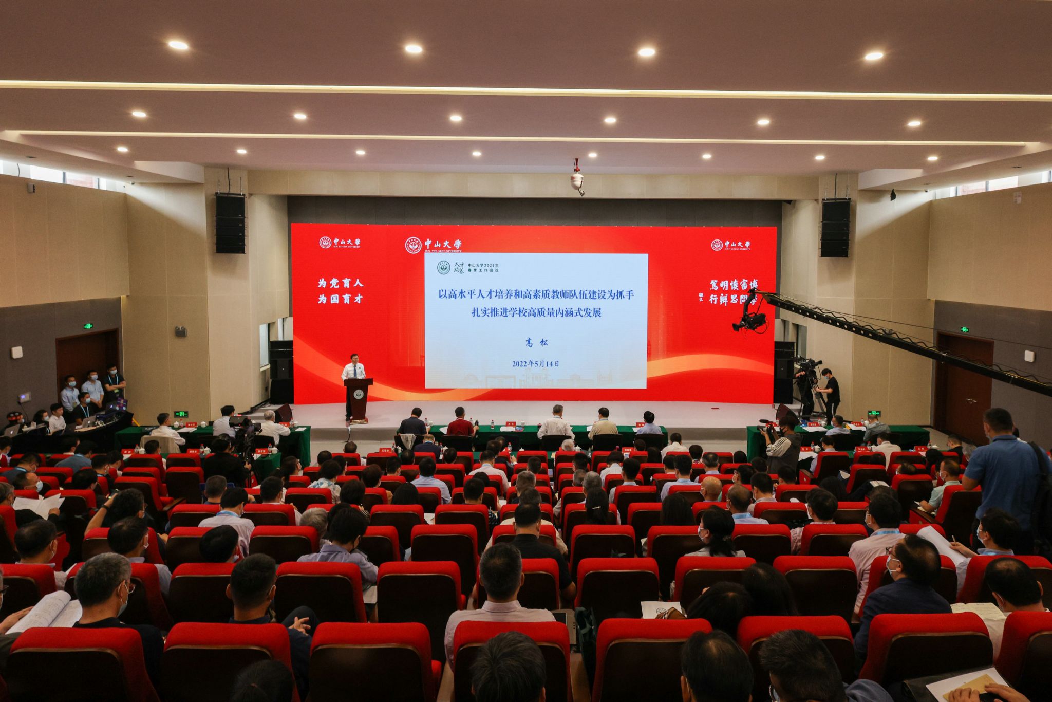 中大新聞網廣州5月15日電(記者孫琛)5月14日上午,中山大學2022年春季工作會議在珠海校區拉開帷幕。本次大會主題聚焦“人才培養”,校長高松院士作了題為“以高水平人才培養和高素質教師隊伍建設為抓手 扎實推進學校高質量內涵式發展”的大會報告,提出要總結和傳承中大文化,守正創新,繼往開來,以立德樹人為根本,以隊伍建設為核心,以學科交叉融合為重點,以院系建設為基礎,以體制機制改革為動力,穩步扎實推進學校高質量內涵式發展。