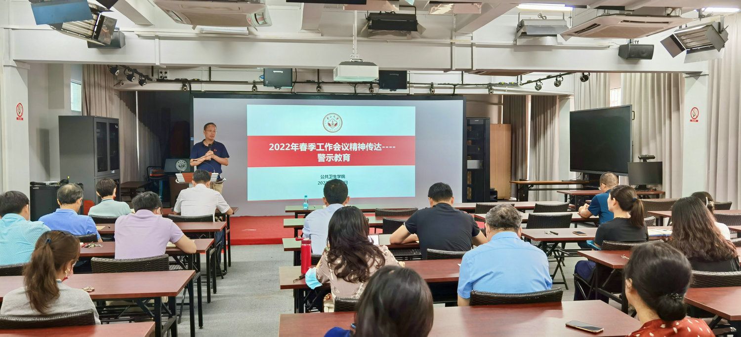 范瑞泉書記做了題為《2022年春季工作會議精神傳達——警示教育》報告,通報了違紀違規典型案例,并對師德師風建設提出要求。他號召全體教職員工“言為士則、行為世范”,做學生為學、為事、為人的大先生,共同營造你追我趕、力爭上游、和諧共享的學院文化,踔厲奮發,攜手并進,建設高水平公共衛生學院。