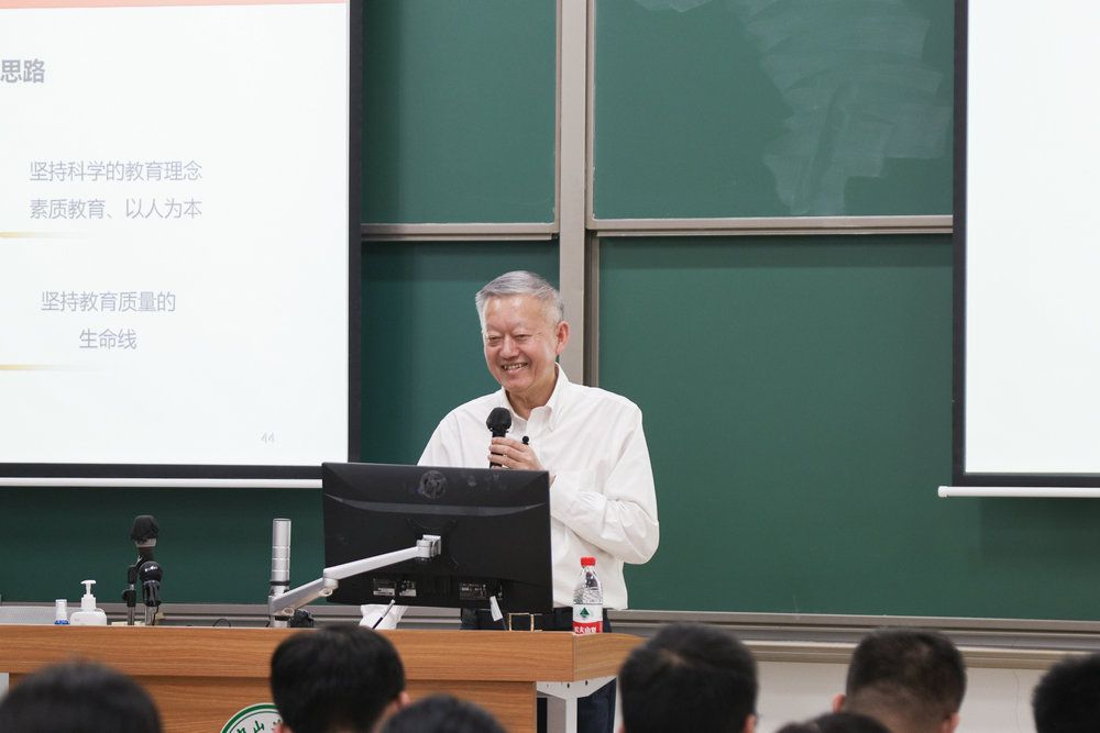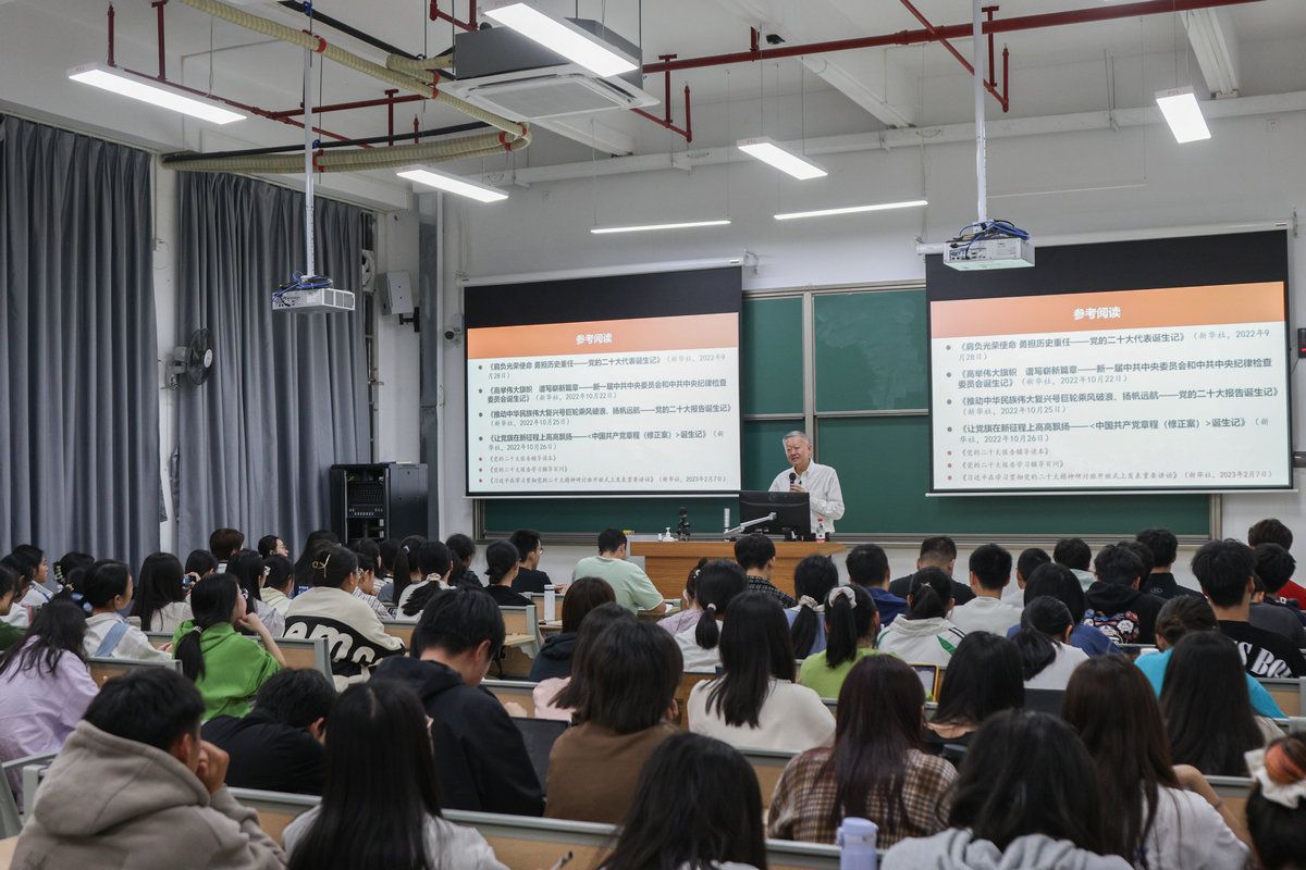 新時代新征程的中心任務(wù)是“以中國式現(xiàn)代化全面推進(jìn)中華民族偉大復(fù)興”。陳春聲書記說道:“中國式現(xiàn)代化是路徑,中華民族偉大復(fù)興是目的”。他通過翔實(shí)的數(shù)據(jù)、生動的史料和中外國情對比進(jìn)行講述,帶領(lǐng)同學(xué)們?nèi)嫦到y(tǒng)地理解了“什么是中國式現(xiàn)代化”,領(lǐng)悟了“堅(jiān)持和加強(qiáng)黨的全面領(lǐng)導(dǎo)、堅(jiān)持中國特色社會主義道路、堅(jiān)持以人民為中心的發(fā)展思想、堅(jiān)持深化改革開放、堅(jiān)持發(fā)揚(yáng)斗爭精神”這五條前進(jìn)道路上必須牢牢把握的重大原則的豐富內(nèi)涵和深刻意義,激發(fā)了同學(xué)們?yōu)橹腥A民族偉大復(fù)興而奮斗的緊迫感和使命感。