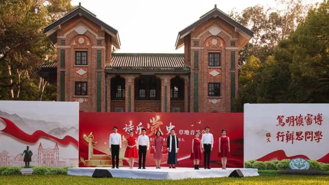 為慶祝中國共產黨成立100周年,在師生中開展黨史學習教育,弘揚偉大建黨精神,弘揚中華優秀傳統文化,致敬偉大新時代,學校舉辦了系列以黨史為題材的藝術活動。2021年舉辦“詩樂黨史”草地音樂會,“弦樂四重奏”草地音樂會、“我和我的祖國”民族音樂專場音樂會、“在燦爛陽光下”系列草地音樂會等9場活動,覆蓋三校區五校園全體師生員工,提升校園文化氛圍。在草地音樂會系列活動中,融入了大量傳統民樂表演,以民族音樂為載體,開展浸潤式美育,弘揚中華優秀傳統文化。