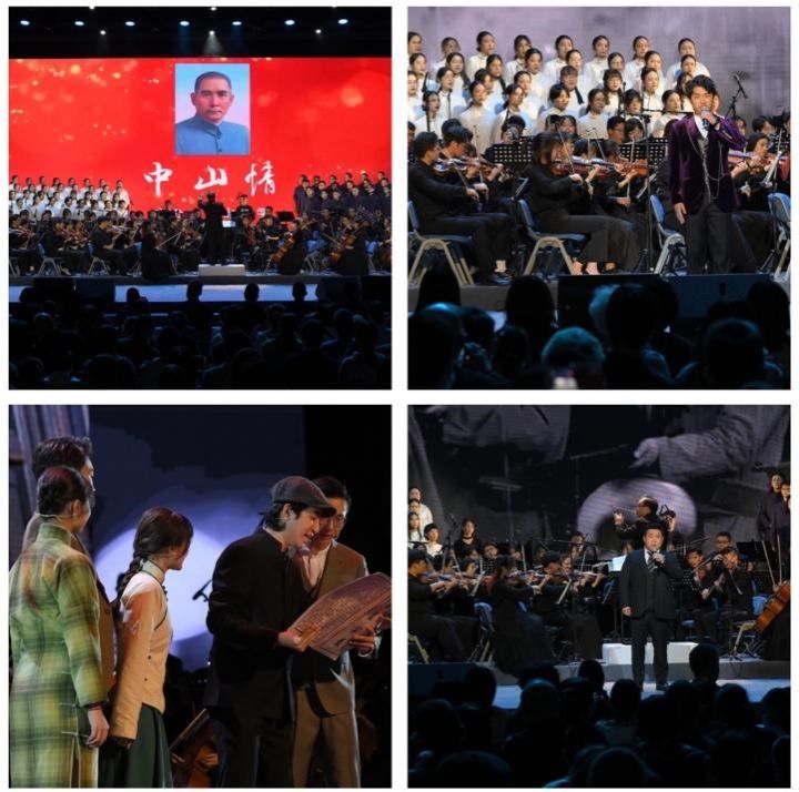 中山大學從2016年開始打造“紅色三部曲”《中山情》《篤行》和《奮斗的歲月》。《中山情》以音樂、話劇、朗誦等藝術形式,講述了孫中山先生的革命人生,表現了中國共產黨人繼承孫中山先生遺愿為民族復興和人民幸福而不懈奮斗的主題。《篤行》以新民主主義革命時期校史為素材,通過話劇形式講述了進步師生在馬克思主義旗幟感召下和中國共產黨領導下投身革命、追求理想的故事。《奮斗的歲月》講述人民中大時期科學家愛國報國的故事。截至目前,學校40多名藝術教師、5000多名學生參與了紅色三部曲的創編演出,《中山情》和《篤行》已在全校演出24場次,近70000人次師生觀看演出。紅色三部曲的創編演出,是全面加強和改進學校美育、以創新形式思想政治教育的重要探索,是以藝術作品傳承紅色基因的美育實踐,是以美育人的重要舉措,是生動的“大思政課”。