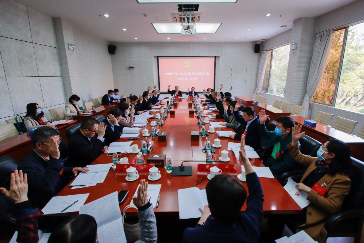 預備會議之后,中國共產黨中山大學第十四次代表大會主席團第一次會議在南校園梁銶琚堂第一會議室舉行。會議審議通過了黨代會日程,大會執行主席和大會副秘書長名單,列席、來賓事項,以及大會總監票人、監票人建議名單。會議還審議通過了關于全校黨費收繳、使用和管理情況的報告,提出了學校第十四屆黨委委員和紀委委員候選人建議名單。會議由學校第十四次黨代會秘書長國亞萍同志主持。