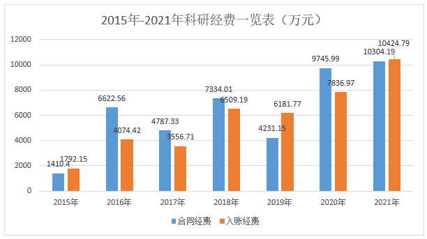 2015年-2021年科研經(jīng)費(fèi)