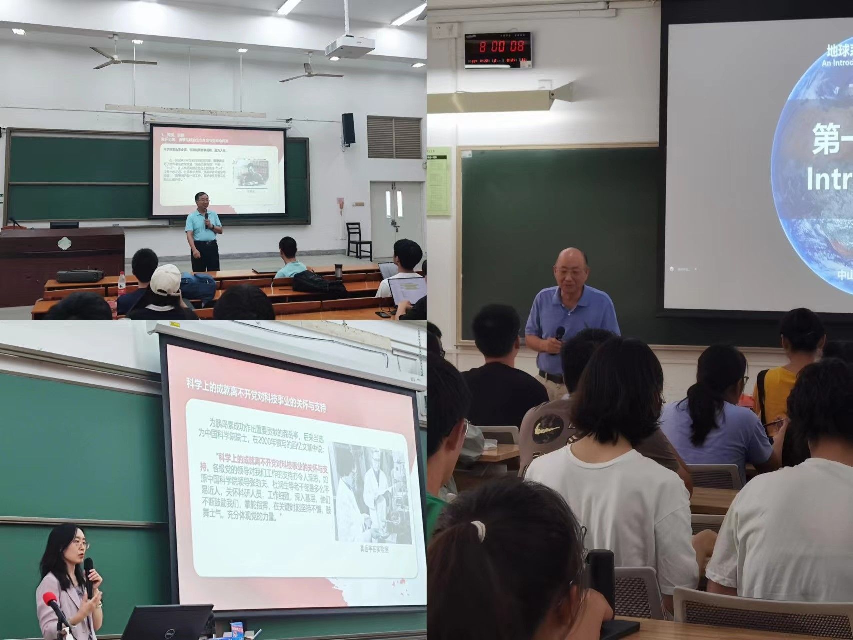 右邊:戴永久院士為22級(jí)本科生講授《地球系統(tǒng)科學(xué)概論》