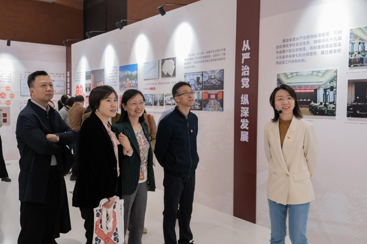 在宣傳部沈麟同志的講解下,黨員們細致地參觀了主題展覽,深入理解了展覽的定位、目標和重大意義,更加系統地了解了學校過去五年的發展成就、新局新貌,更加深刻地領悟了學校始終與國家民族同呼吸、共命運的擔當與品格,更加全面地感受到學校心懷“國之大者”,加快高質量內涵式發展的決心和斗志。