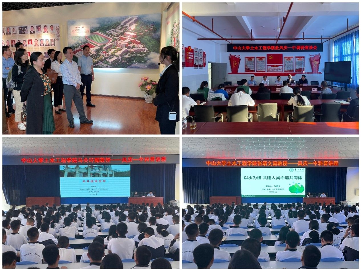 曹新書記一行還先后來到鳳慶縣第一中學、第三中學和特殊教育學校調(diào)研。在鳳慶縣第一中學,馬會環(huán)副教授、張靖文副教授分別以《未來建筑世界》和《以水為紐 共建人類命運共同體》為題開展科普教育。兩位老師以生動的語言和豐富的案例介紹了土木工程、水利工程兩個重要學科的發(fā)展歷史與未來展望,深入淺出地講解兩個學科對促進人類文明進步和經(jīng)濟社會發(fā)展的重要作用。精彩的講座博得現(xiàn)場同學們熱烈的掌聲。調(diào)研組在鳳慶一中還看望了我校在此支教的同學,與學校教師代表、支教同學進行座談交流,對中學生素質(zhì)教育、大中小學教育的貫通銜接等問題展開了深入的探討,同時也勉勵支教同學們繼續(xù)在各自的教學崗位上辛勤工作,弘揚志愿精神,努力展現(xiàn)中大學子風采,為鳳慶的教育貢獻力量。在鳳慶縣第三中學和特殊教育學校,大家深入了解兩校近年發(fā)展狀況和中山大學從不同方面給予的幫助和支持情況。