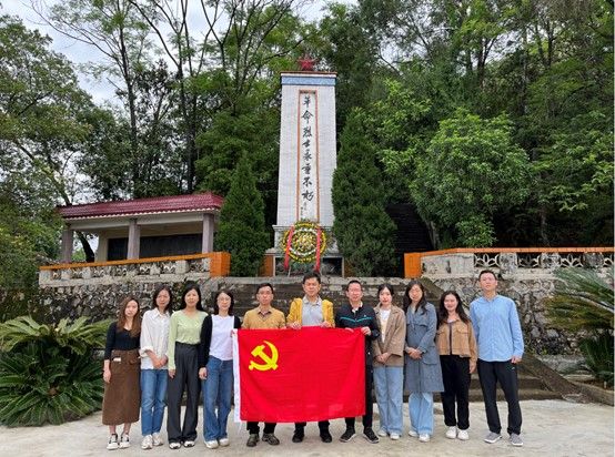 大家還來到革命烈士陵園瞻仰紅色革命傳統教育基地連藍江烈士紀念碑。在紀念碑前,大家認真聆聽黃旭俊書記介紹解放戰(zhàn)爭期間革命先輩解放連陽地區(qū)的紅色故事,重溫了革命先烈在豐陽鎮(zhèn)浴血戰(zhàn)斗的英勇事跡和光輝歲月,并在紀念碑前鞠躬致敬。隨后,大家來到中山大學茶博園。在篤行園,大家在聽取黃旭俊書記介紹學校幫扶茶農進行茶園規(guī)劃設計的同時,自己也親手栽種一棵棵幼小的茶樹苗,在鄉(xiāng)村振興這片熱土里埋下了希望的種子。