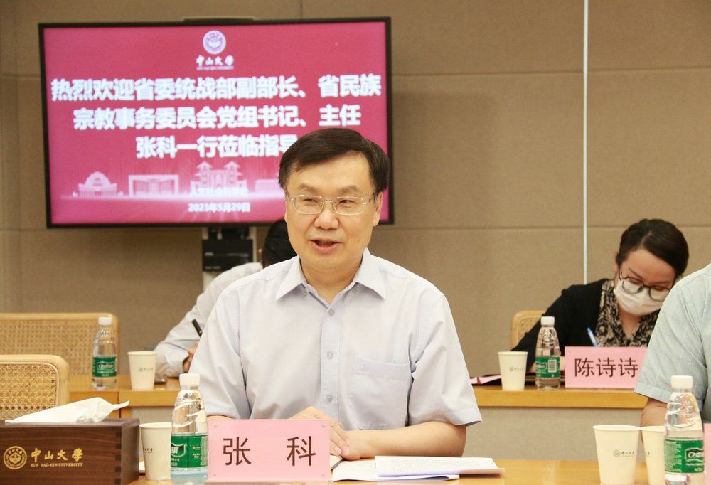 中大新聞網(wǎng)廣州6月1日電(通訊員劉時(shí))5月29日下午,廣東省民族宗教事務(wù)委員會(huì)調(diào)研組一行到我校開展專題調(diào)研。座談會(huì)在中山大學(xué)廣州校區(qū)南校園中山樓713會(huì)議室召開。廣東省委統(tǒng)戰(zhàn)部副部長(zhǎng)、省民族宗教委黨組書記、主任張科,中山大學(xué)黨委書記、歷史學(xué)系教授陳春聲,副校長(zhǎng)、歷史學(xué)系教授謝湜等出席座談會(huì)。廣東省民族宗教事務(wù)委員會(huì)調(diào)研組成員,中山大學(xué)鑄牢中華民族共同體意識(shí)研究基地成員,人文社會(huì)科學(xué)處、財(cái)務(wù)處等相關(guān)職能部門負(fù)責(zé)人參與座談和交流。謝湜主持調(diào)研座談會(huì)。
