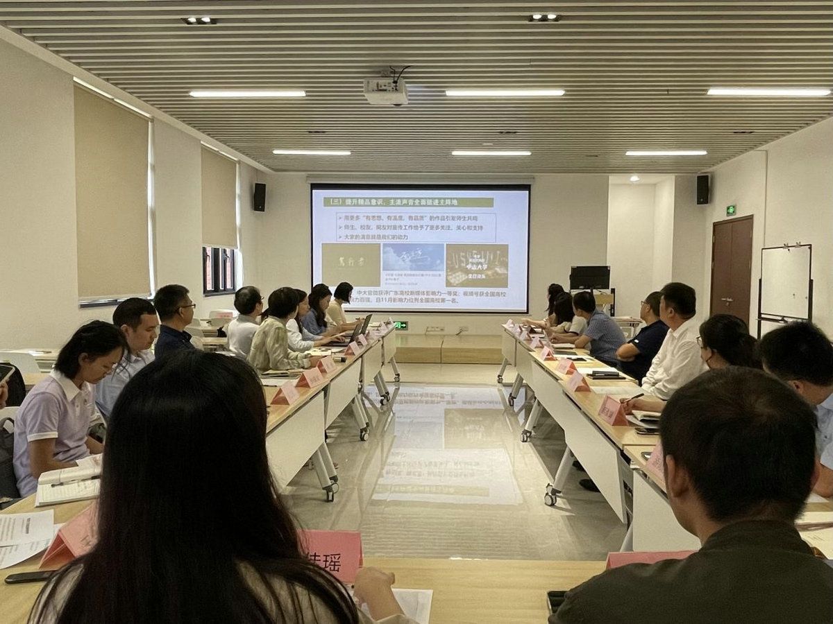 接下來,黨委宣傳部將把本次調(diào)研成果轉(zhuǎn)化為解決問題的實際行動,繼續(xù)強化校院兩級宣傳合力,開展通訊員隊伍、學(xué)生宣傳隊伍培訓(xùn),積極協(xié)同各單位深入挖掘?qū)W院學(xué)科特色和亮點,聚焦學(xué)術(shù)科研動態(tài)及重大成果等內(nèi)容。同時,緊密結(jié)合珠海經(jīng)濟社會發(fā)展需求和創(chuàng)新驅(qū)動發(fā)展戰(zhàn)略要求,深化與主流媒體的溝通聯(lián)動,加強主題報道的組織、策劃及推廣,展現(xiàn)學(xué)校內(nèi)涵式高質(zhì)量發(fā)展的新氣象。圍繞校區(qū)和學(xué)院的重點工作和中心工作,優(yōu)化宣傳工作流程,創(chuàng)新宣傳形式,加快融媒體矩陣構(gòu)建,加強文化氛圍營造及精神內(nèi)涵挖掘,推進品牌建設(shè)及管理,著力書寫學(xué)校宣傳思想工作一體化發(fā)展新篇章。