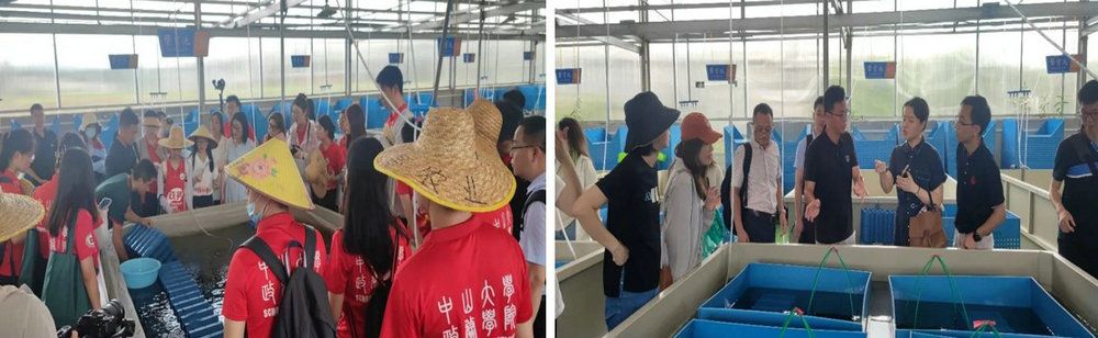 在畔水稻蝦綜合養殖基地,師生們考察現代農業產業發展。畔水村堅持“以糧為本、一水多用”,形成了復合型興農生態系統,在傳統水稻田中新增了特色水產養殖,且動植物天然特性的配合也將構建起更加綠色的生態循環。畔水村一方面通過引入科學、先進的現代養殖技術與模式,提高水產養殖的產量與品質;另一方面,政府、投資人、村委會、研究機構/合作企業及消費者形成五位一體的合作發展模式,盤活農村資源,真正實現富農戶、旺農村。
