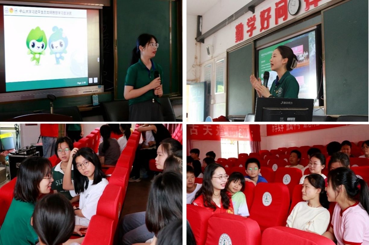 同時,學院師生前往南昌經開區樵舍鎮第二中學開展“環保科普”與“筑夢大學”主題宣講活動。碩士生張晴以世界環境日的發展歷程為切入,講述中國的“雙碳故事”,傳播綠色低碳理念;本科生蔡曉嵐以“我在中山大學的四年”為主題向同學們講述了在中山大學求學成長的故事,勉勵大家勤學奮斗,考取理想大學。主題宣講過后,環境學院師生組織選調生和當地學生以小組為單位,圍繞生態文明知識、未來專業選擇等問題開展“真人圖書館”主題活動。通過面對面的交流,志愿者們為學生們答疑解惑,鼓勵同學們樹立遠大理想,未來為我國生態文明建設貢獻力量。