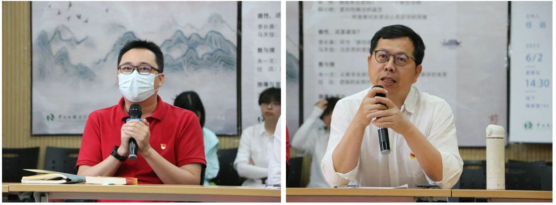 根據(jù)活動(dòng)安排,哲學(xué)系黨委分別于6月2日和6日,在錫昌堂103會(huì)議室組織開展了三場共學(xué)對(duì)談。活動(dòng)開始前哲學(xué)系黨委副書記王莉婧介紹了舉辦活動(dòng)的初衷和意義,并帶領(lǐng)大家集中學(xué)習(xí)了黨的二十大報(bào)告。