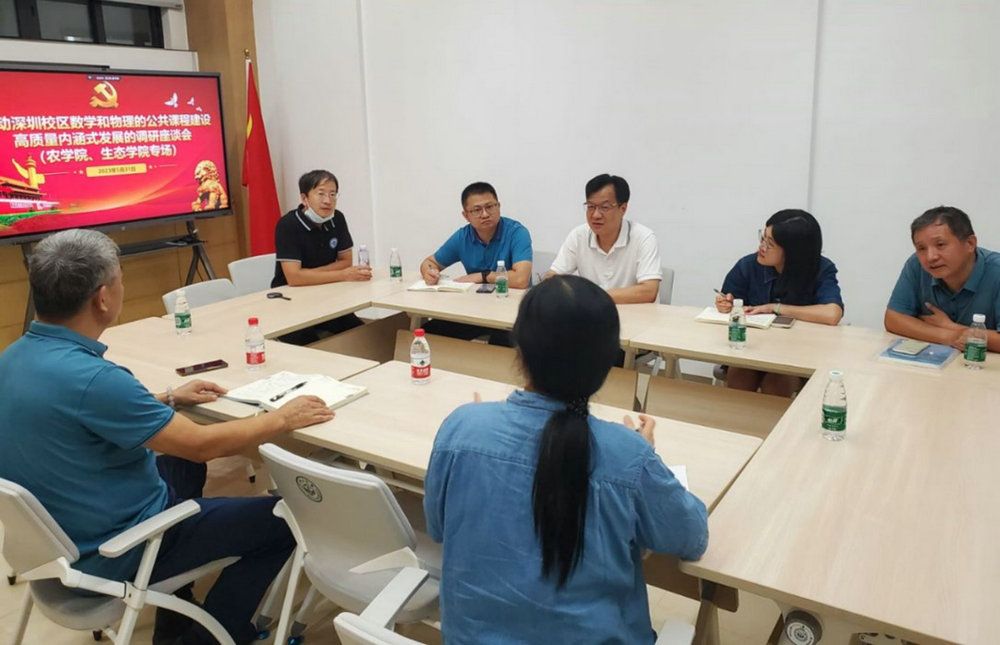 5月17日,面向深圳校區院系開展集中調研座談會,藥學院(深圳)、材料學院、生物醫學工程學院、電子與通信工程學院、農學院、生態學院、先進能源學院和網絡空間安全學院等8個學院的分管領導、教師代表及教學秘書到場,共同研討校區數學和物理的公共課程建設情況。各學院重點提出了在深圳校區開設數學和物理的重修班和進階課程的需求,并期望理學院打造公共課程管理平臺來優化資源配置,提高教學質量,加強學生的數理基礎。