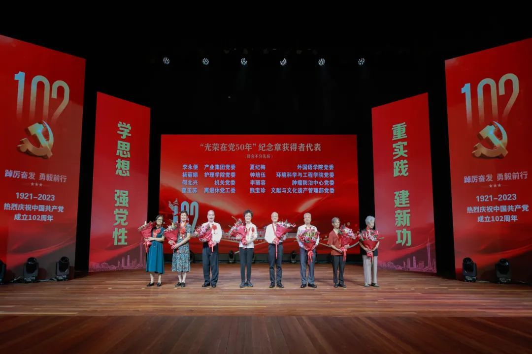 中央第五十七指導(dǎo)組組長(zhǎng)、四川大學(xué)黨委原書記王建國(guó),中央第五十七指導(dǎo)組成員劉詩(shī)林,教育部黨組派駐中山大學(xué)黨建工作聯(lián)絡(luò)員、華南理工大學(xué)原常務(wù)副校長(zhǎng)彭新一,校領(lǐng)導(dǎo)、院士代表和黨外人士代表、機(jī)關(guān)部處負(fù)責(zé)人、各二級(jí)黨組織負(fù)責(zé)人、“光榮在黨50年”紀(jì)念章獲得者代表、優(yōu)秀共產(chǎn)黨員代表、優(yōu)秀黨務(wù)工作者代表、先進(jìn)基層黨組織代表及師生代表共900余人出席盛會(huì),共同慶祝黨的生日。大會(huì)同時(shí)通過(guò)學(xué)校融媒體平臺(tái)向三校區(qū)五校園全程直播。